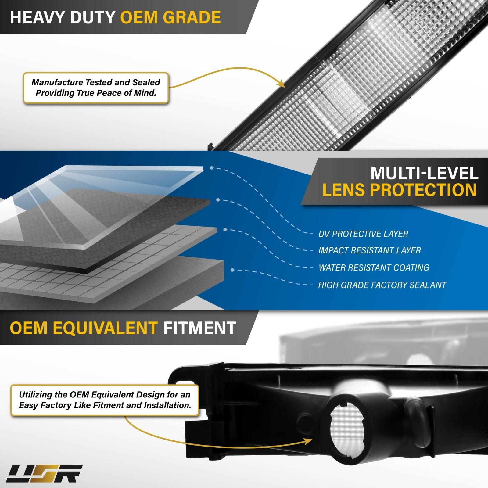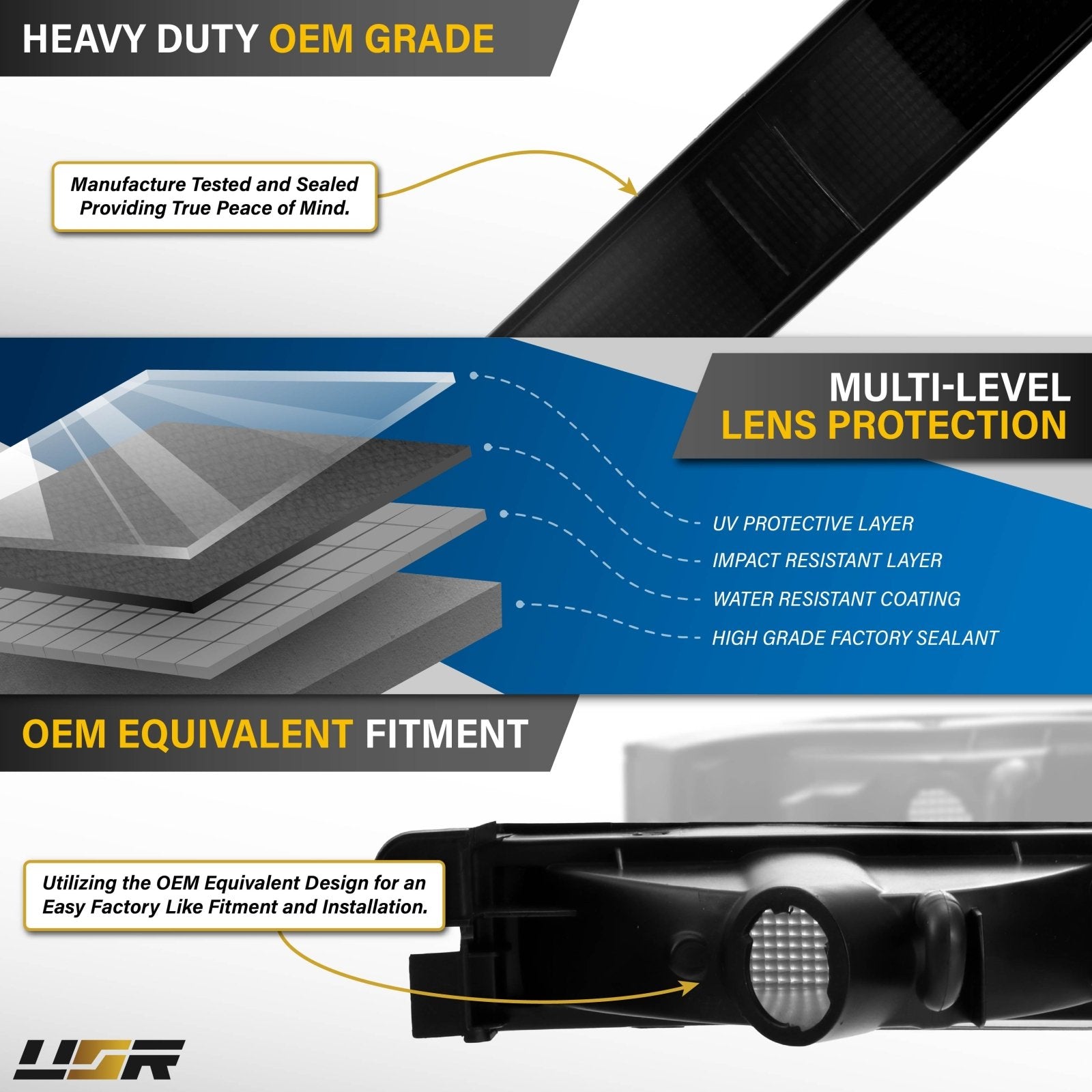 The three headlight standards are 1) Halogen, 2) HID, or 3) LED based.