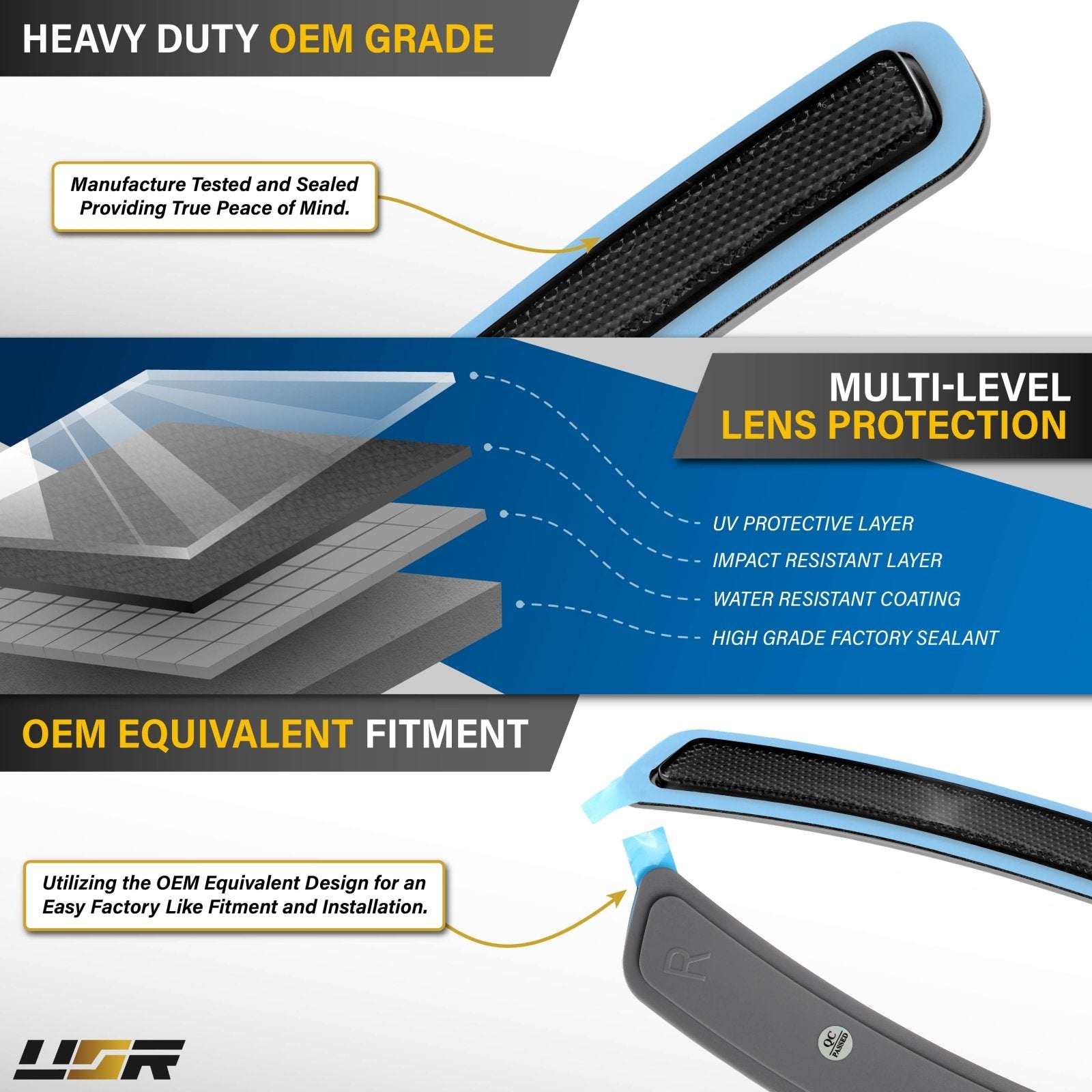 • Unique Smoke-Out lens which is made this way, not painted or tinted on, therefore, it will NOT fade. The smoke color shown in the photo might look darker or lighter than the actual parts due to photo lighting.