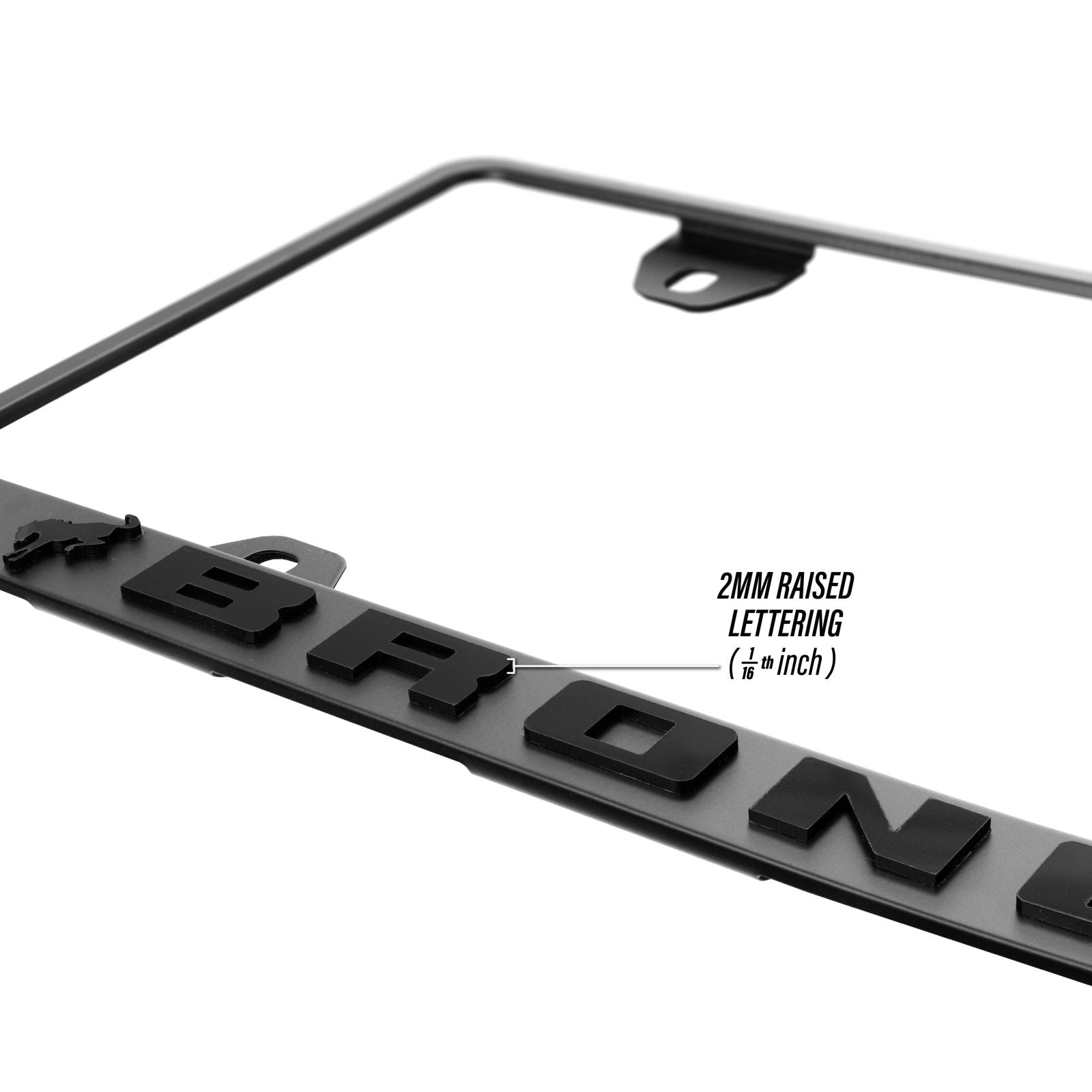 Ford Bronco Stealth Black Powder Coat License Plate Frame with 3D Raised Letters