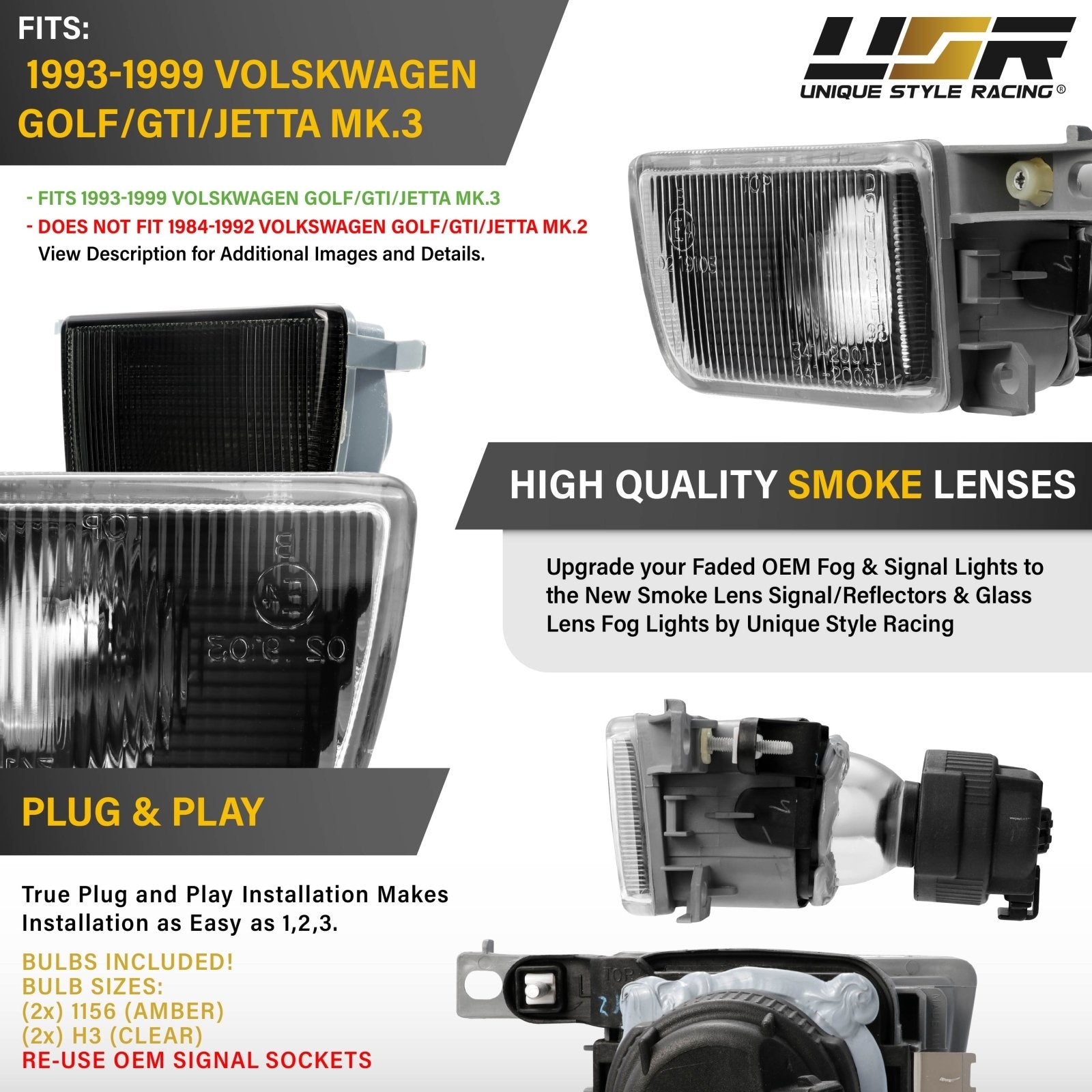 1993-1999 Volkswagen Jetta / Golf / GTI Mk.3 Smoke Lens Projector Fog Lights