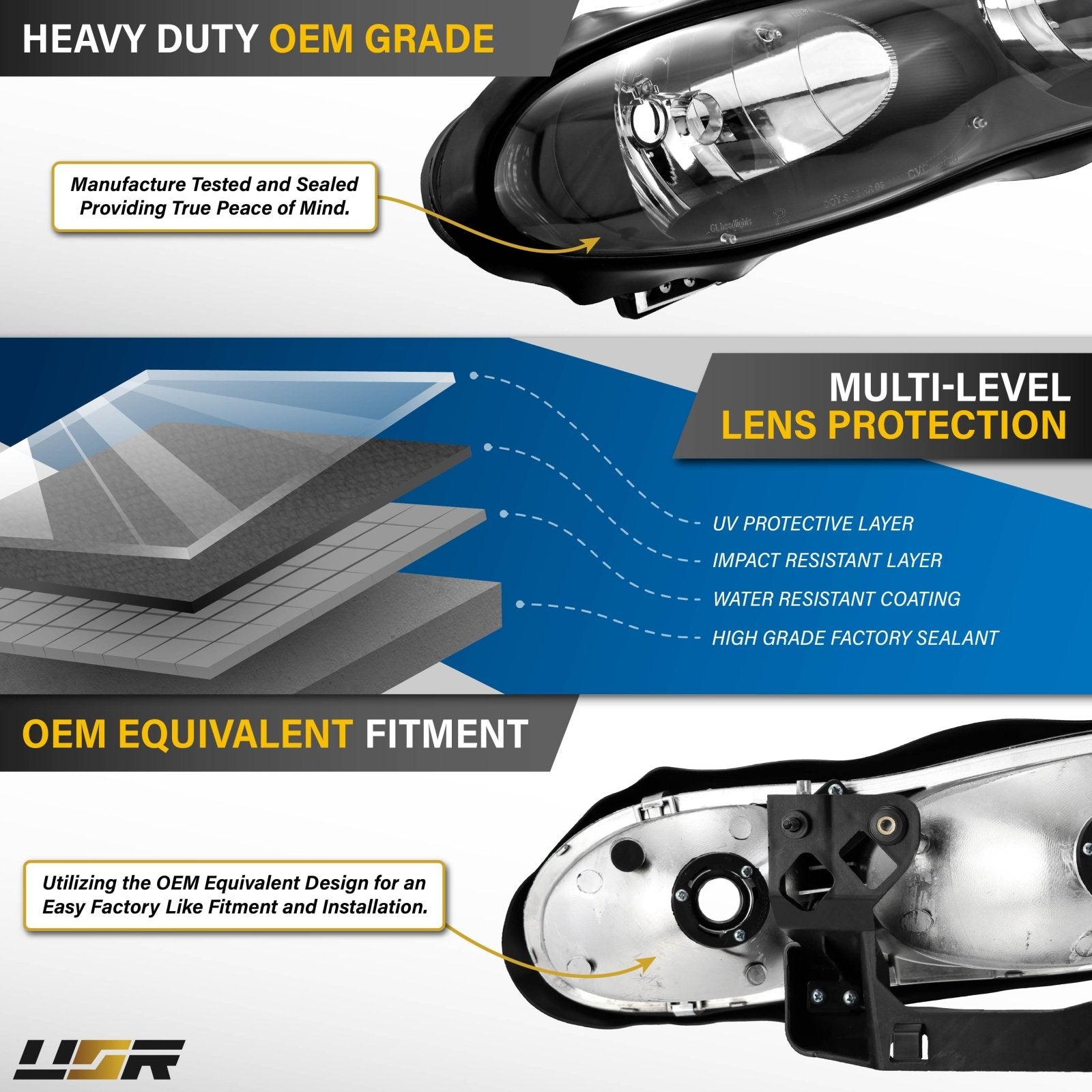 The three headlight standards are