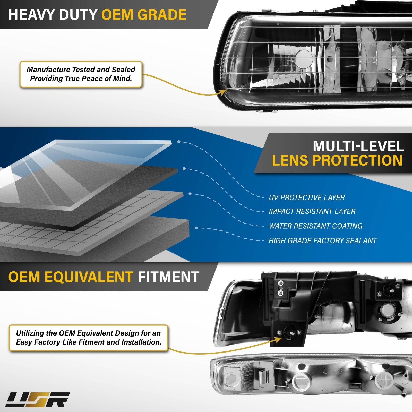 The three headlight standards are