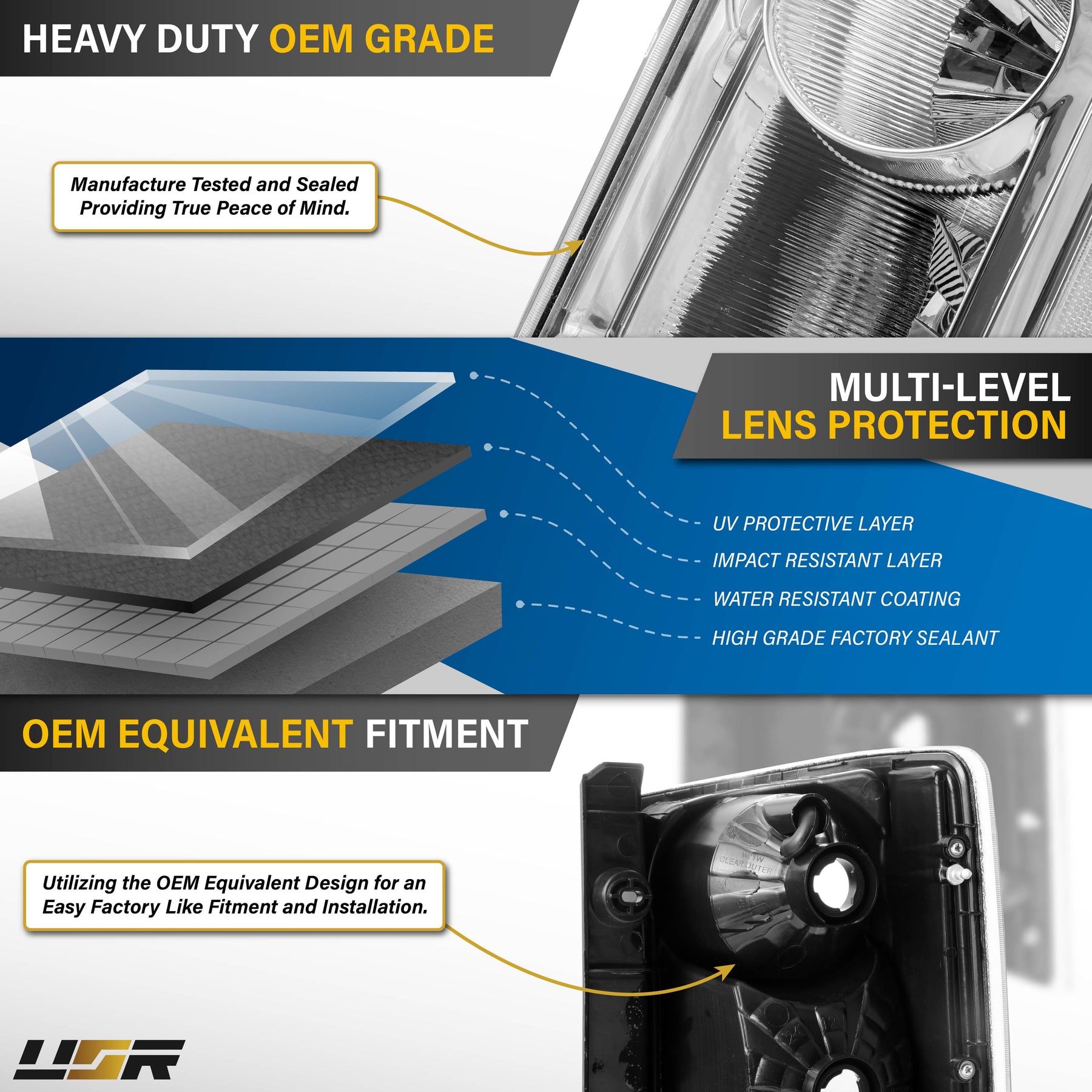 The three headlight standards are