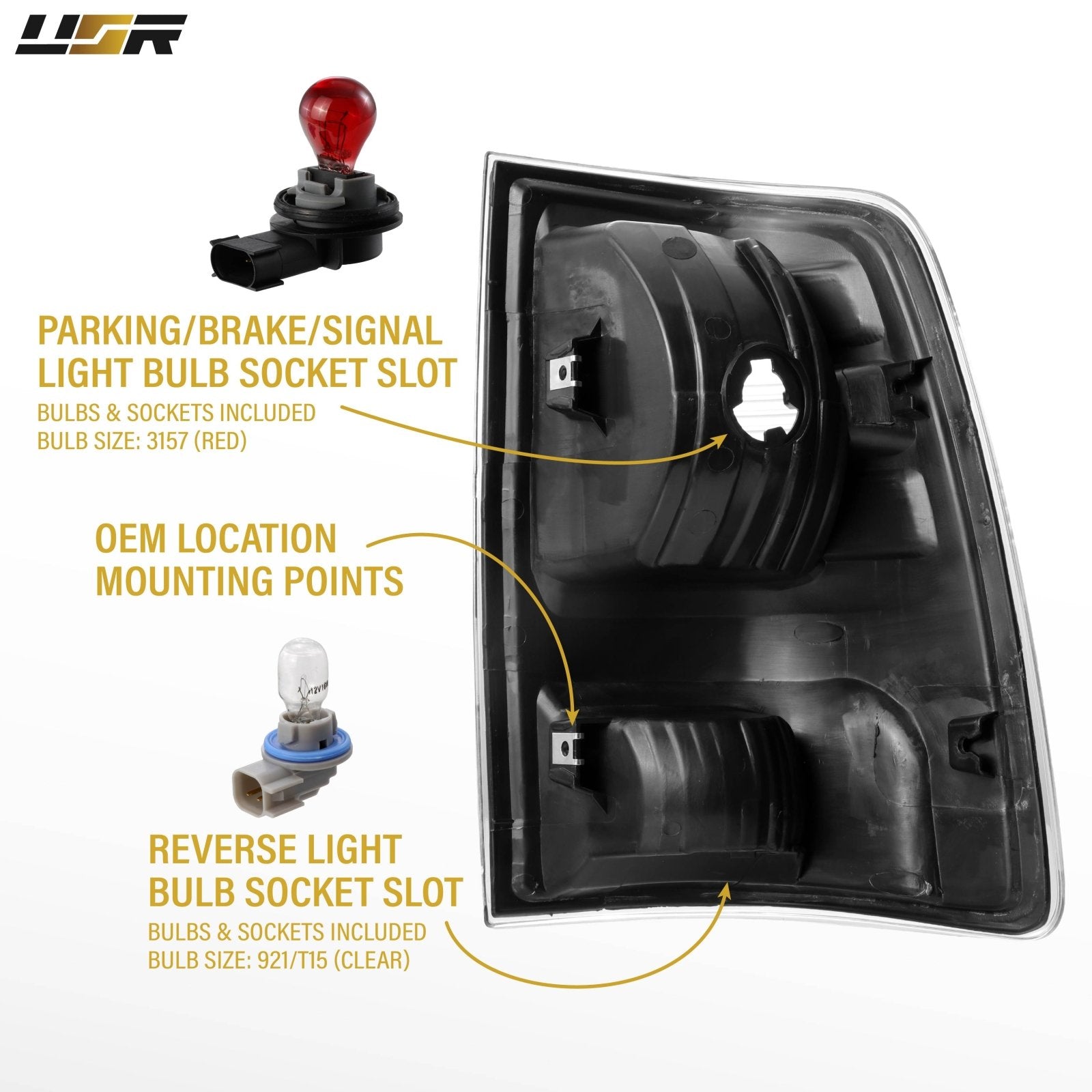 • Bulb Specifications: 3157 Parking / Brake / Signal Light, 921/T15 Reverse Light.