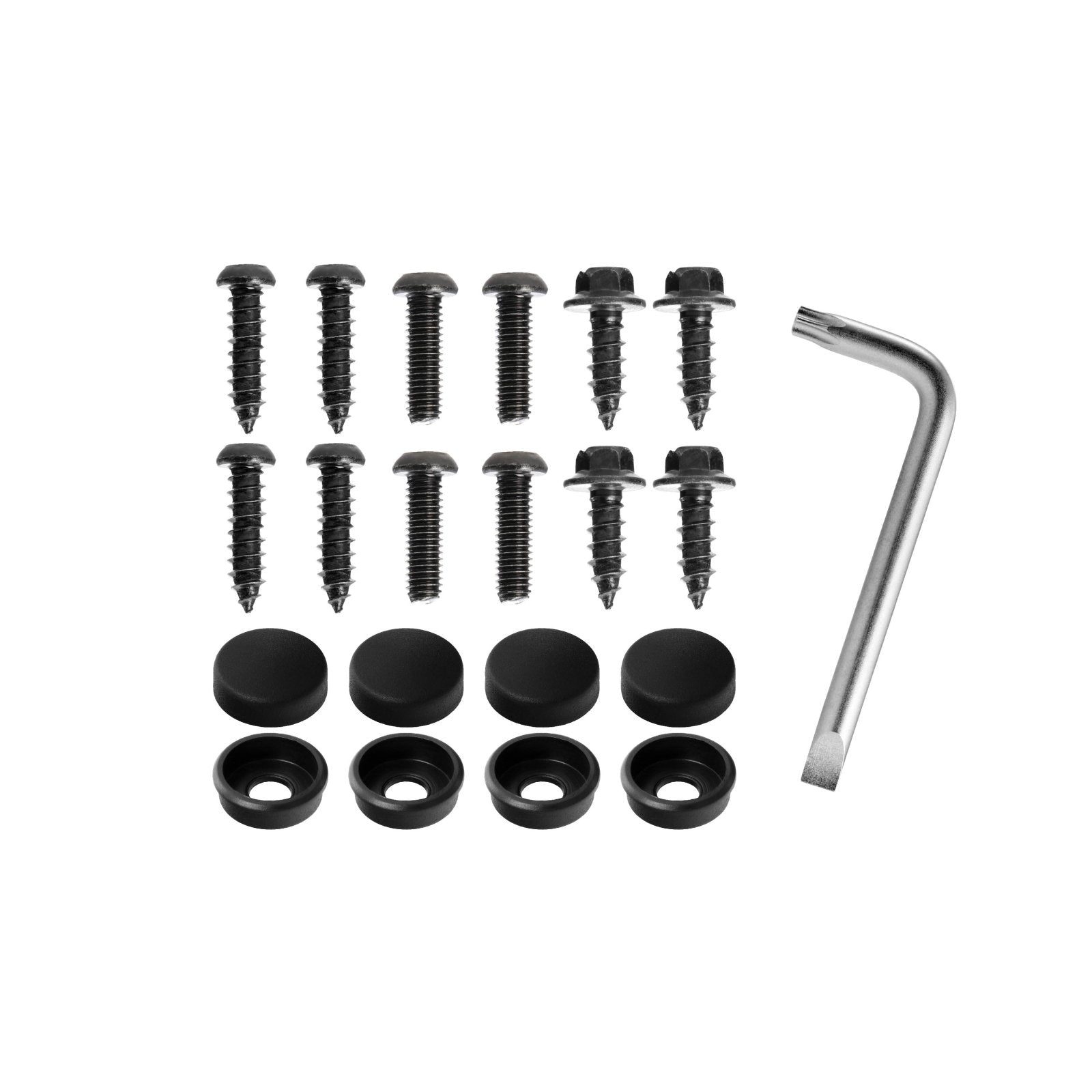 • All Mounting Hardware is already Included for easy Installation. Rust Proof Screws All are 20mm tall and 6mm wide but with different treads that will fit on most vehicles. Wrench "L" tools that has a flat head on one side and Security Torx T30 on the other side.