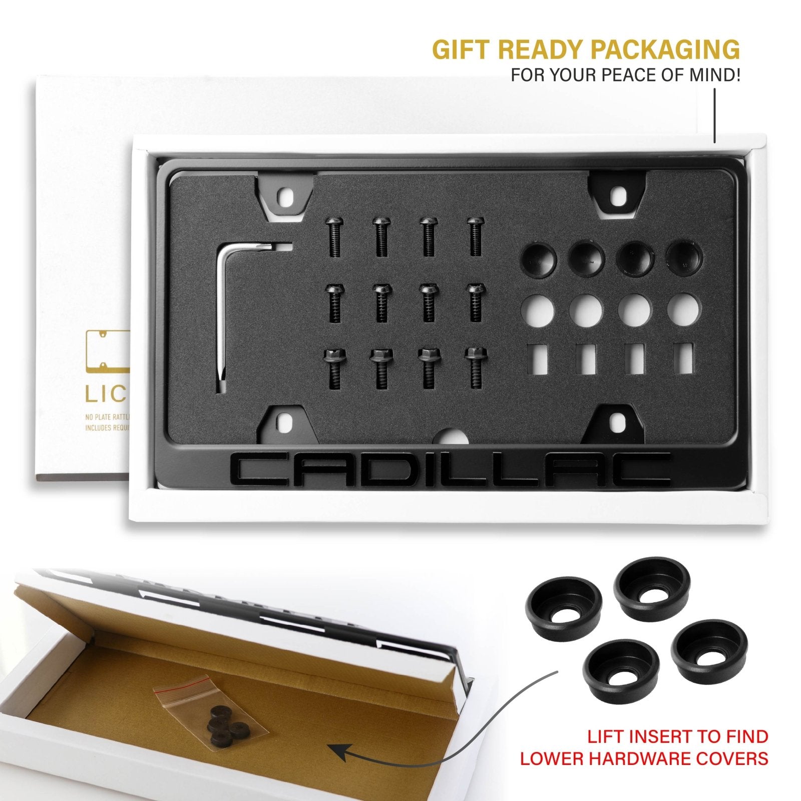 Cadillac Stealth Black Powder Coat License Plate Frame with 3D Raised Letters