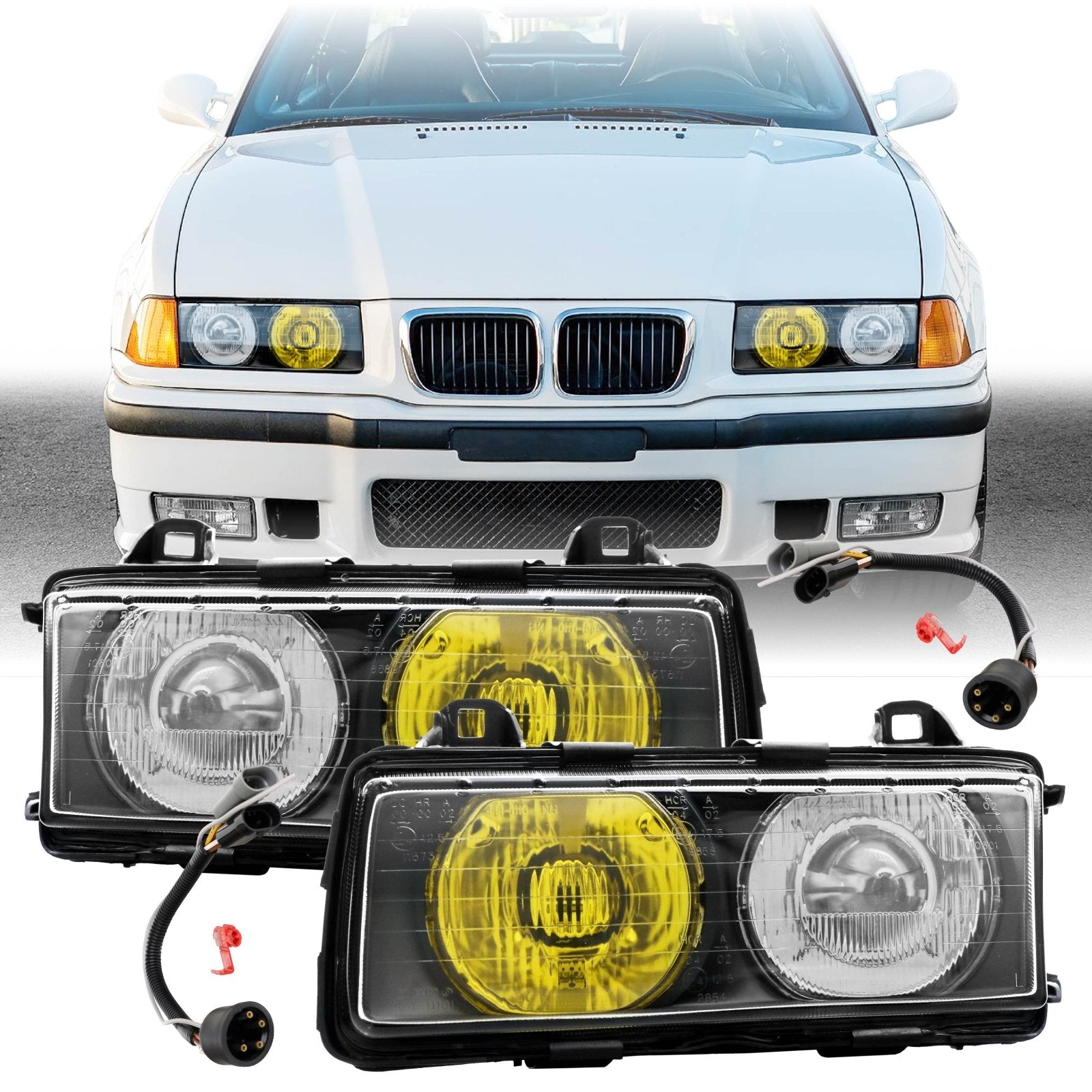 • Rare French Edition Yellow High Beam / Clear Low Beam Glass Lens - The Yellow Lens are made by the manufacturer, which they DO NOT use vinyl wrap OR film. Therefore, it will not fade over time.