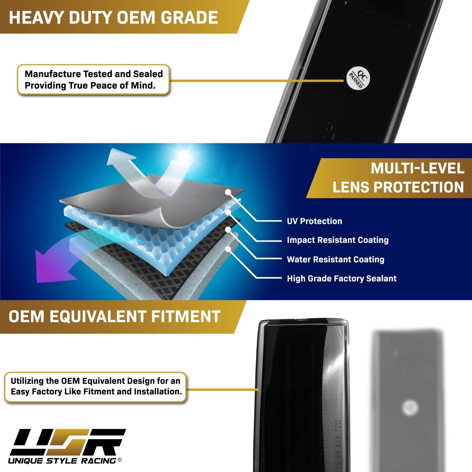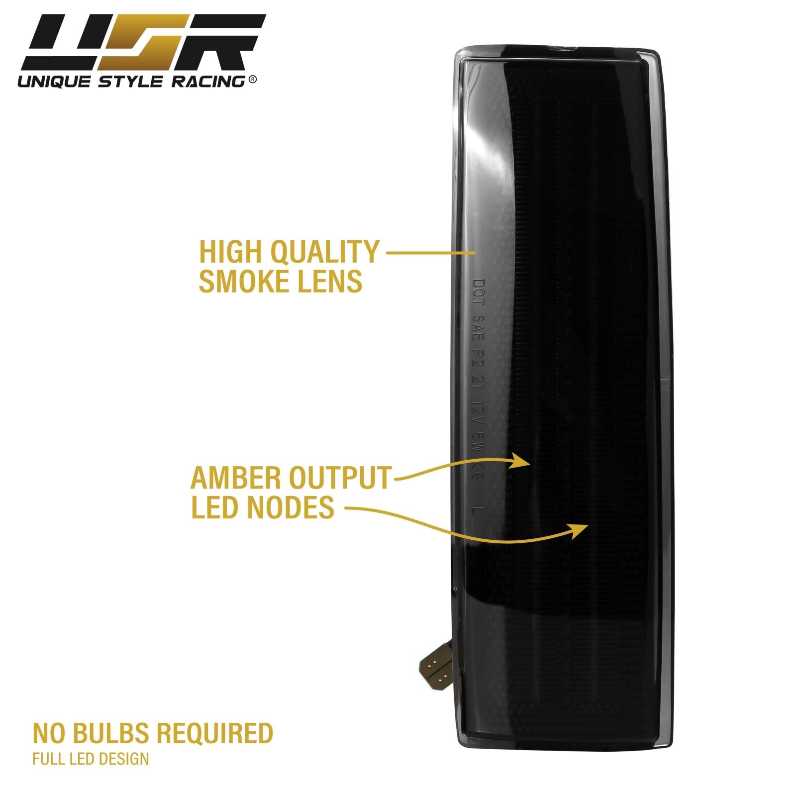 • Unique Smoke-Out lens which is made this way, not painted or tinted on, therefore, it will NOT fade. The smoke color shown in the photo might look darker or lighter than the actual parts due to photo lighting.