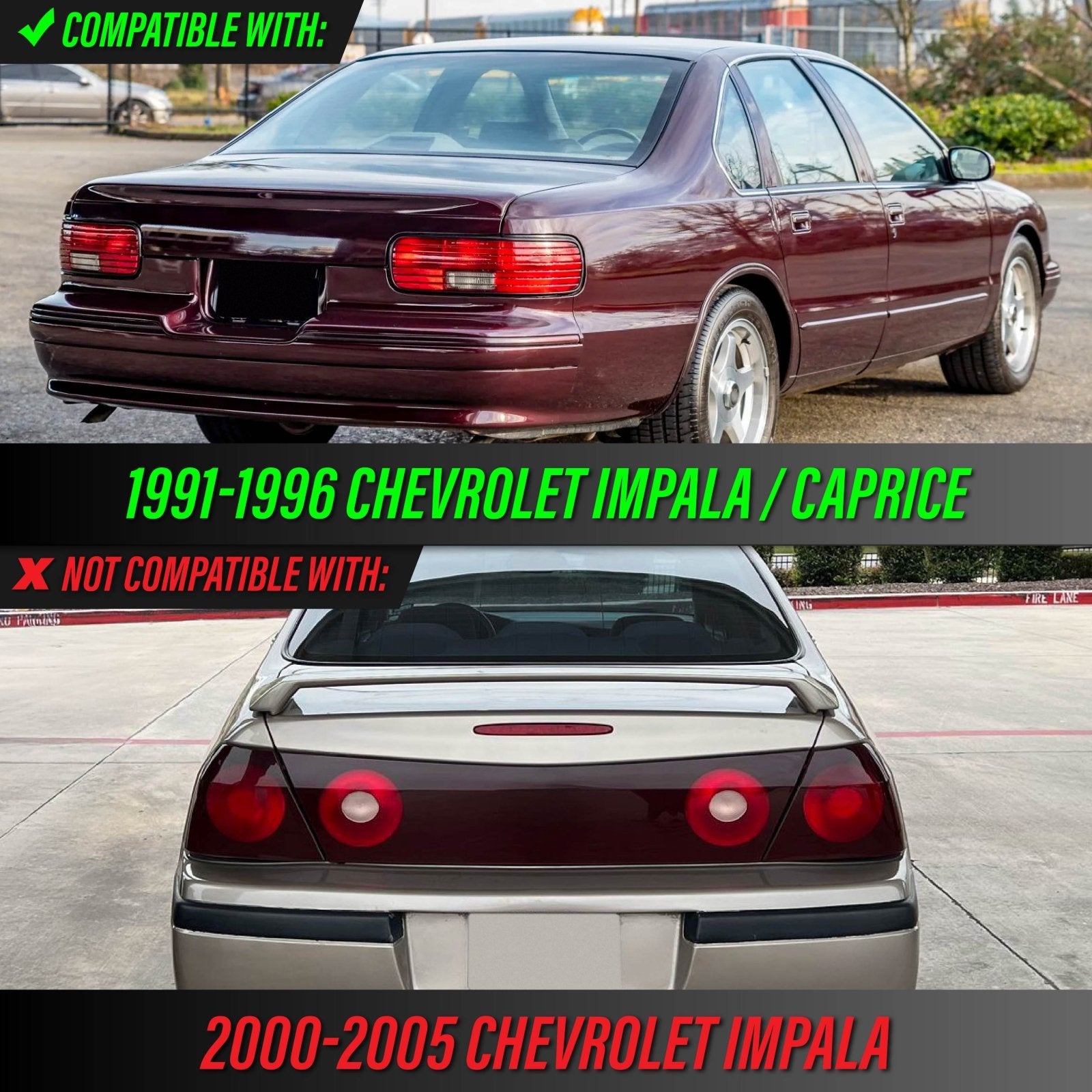 1991-1996 Chevrolet Impala & Caprice Clear or Smoke Lens Tail Light Cover Frames