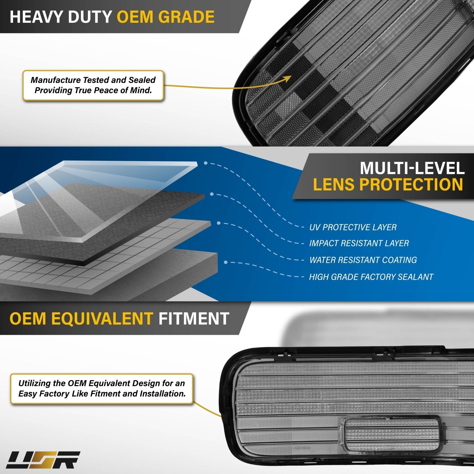 • Unique Smoke-Out lens which is made this way, not painted or tinted on, therefore, it will NOT fade. The smoke color shown in the photo might look darker or lighter than the actual parts due to photo lighting.