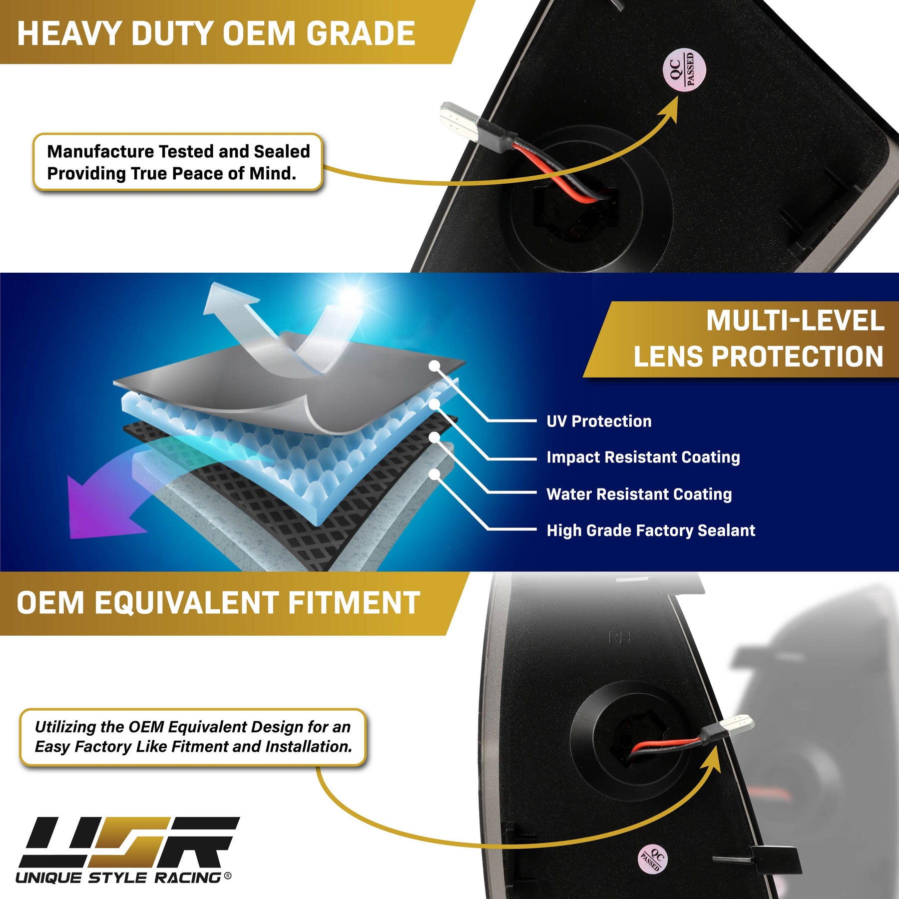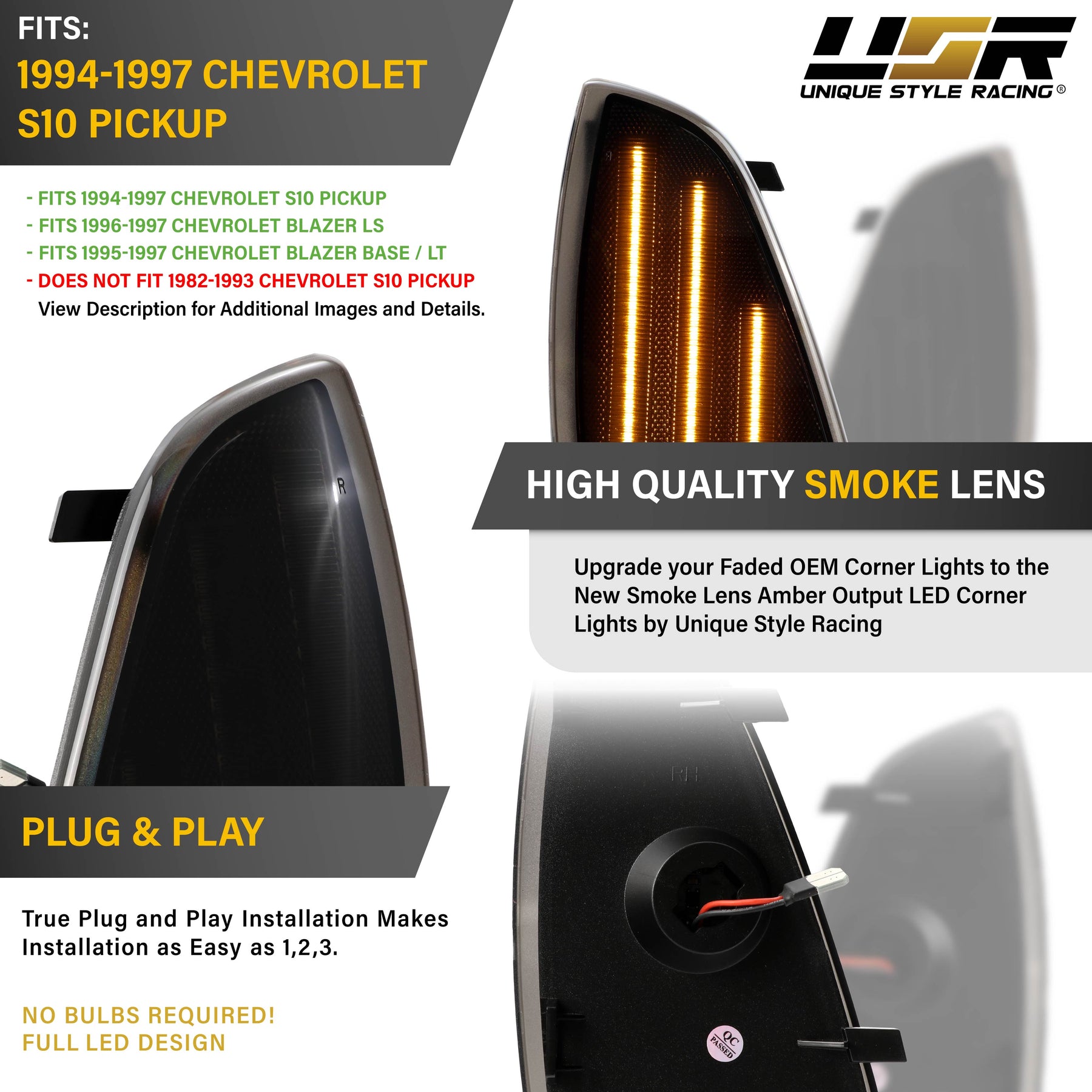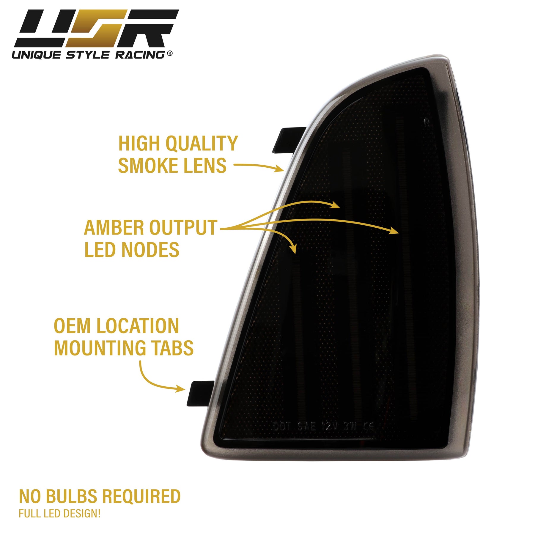 • Unique Smoke-Out lens which is made this way, not painted or tinted on, therefore, it will NOT fade. The smoke color shown in the photo might look darker or lighter than the actual parts due to photo lighting.