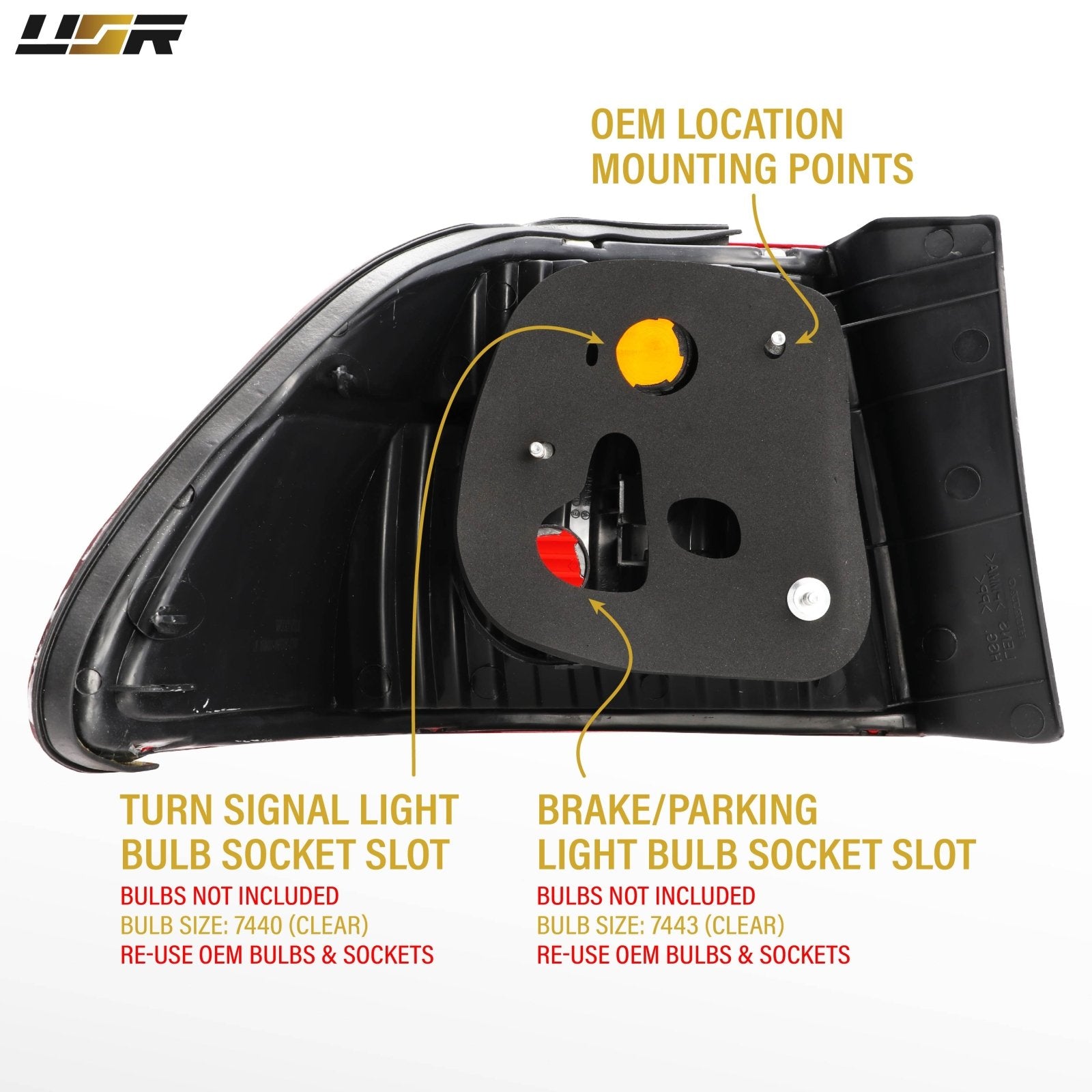 • Bulb Specifications: 7440 Turn Signal Light, 7443 Brake / Parking Light, 7440 Reverse Light, 194/T10 Parking Light