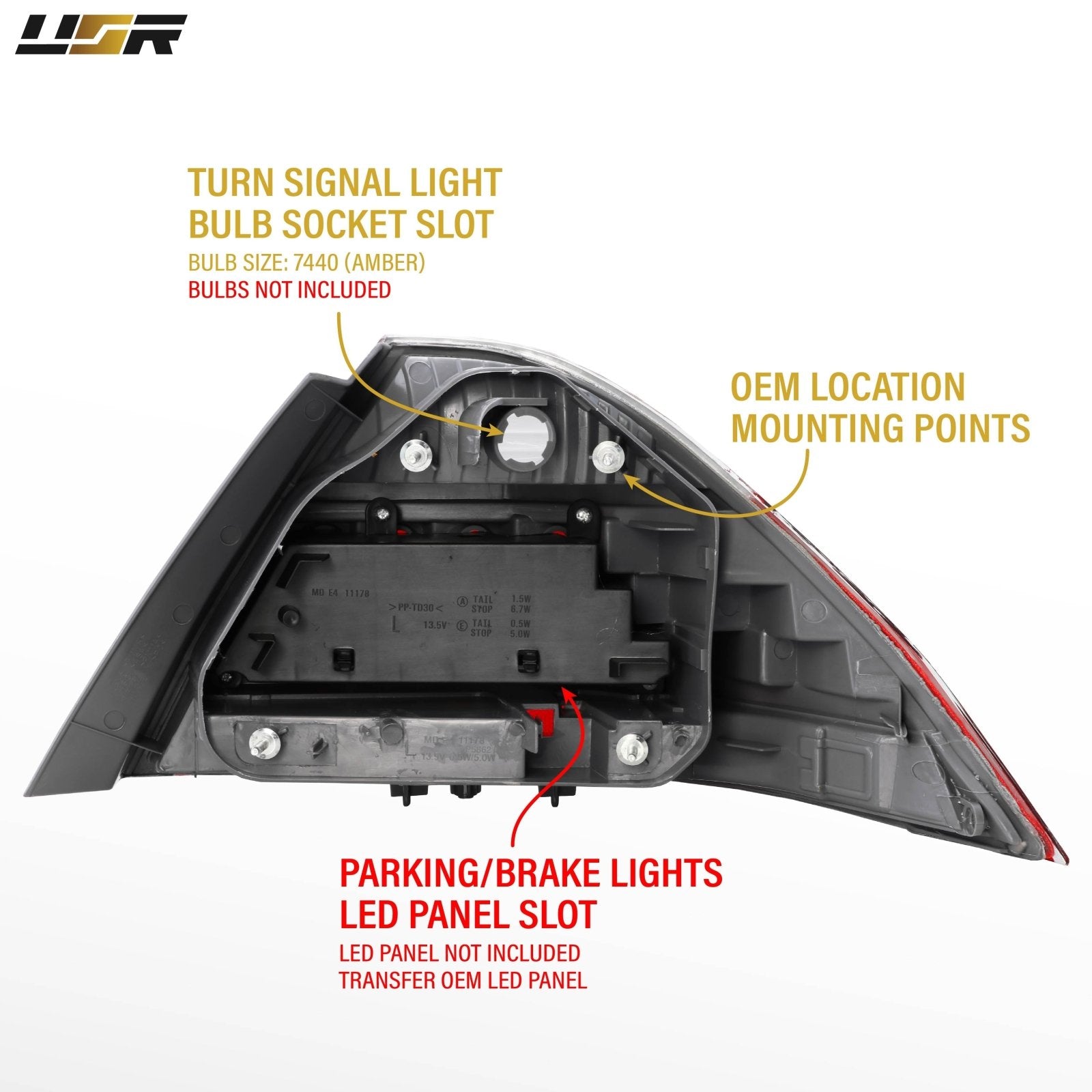 • Bulb Specifications: 3047 Red Parking/Brake/Signal, 3047 Clear Reverse