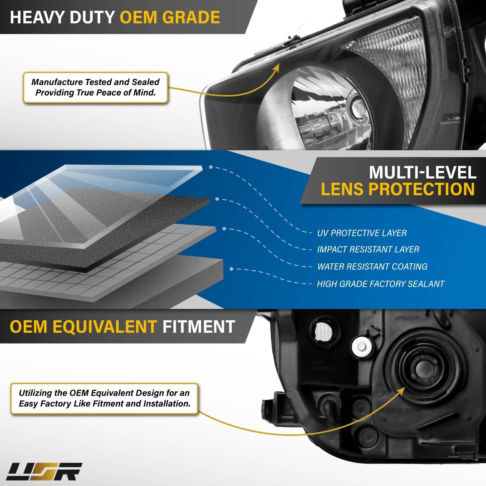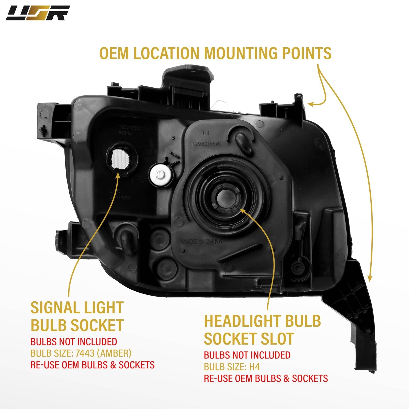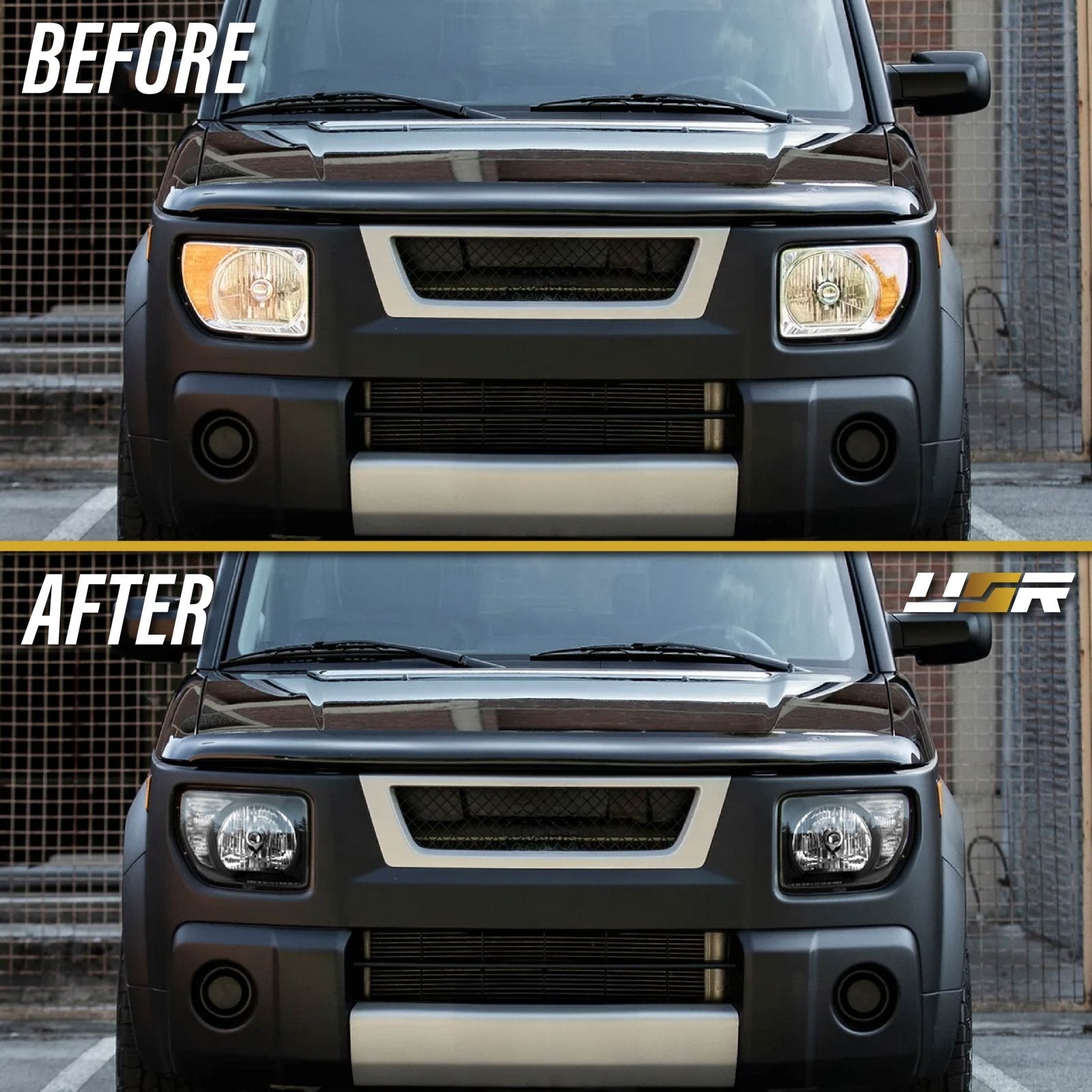 2003-2008 Honda Element Black Housing Clear Lens with Clear Reflector Headlights