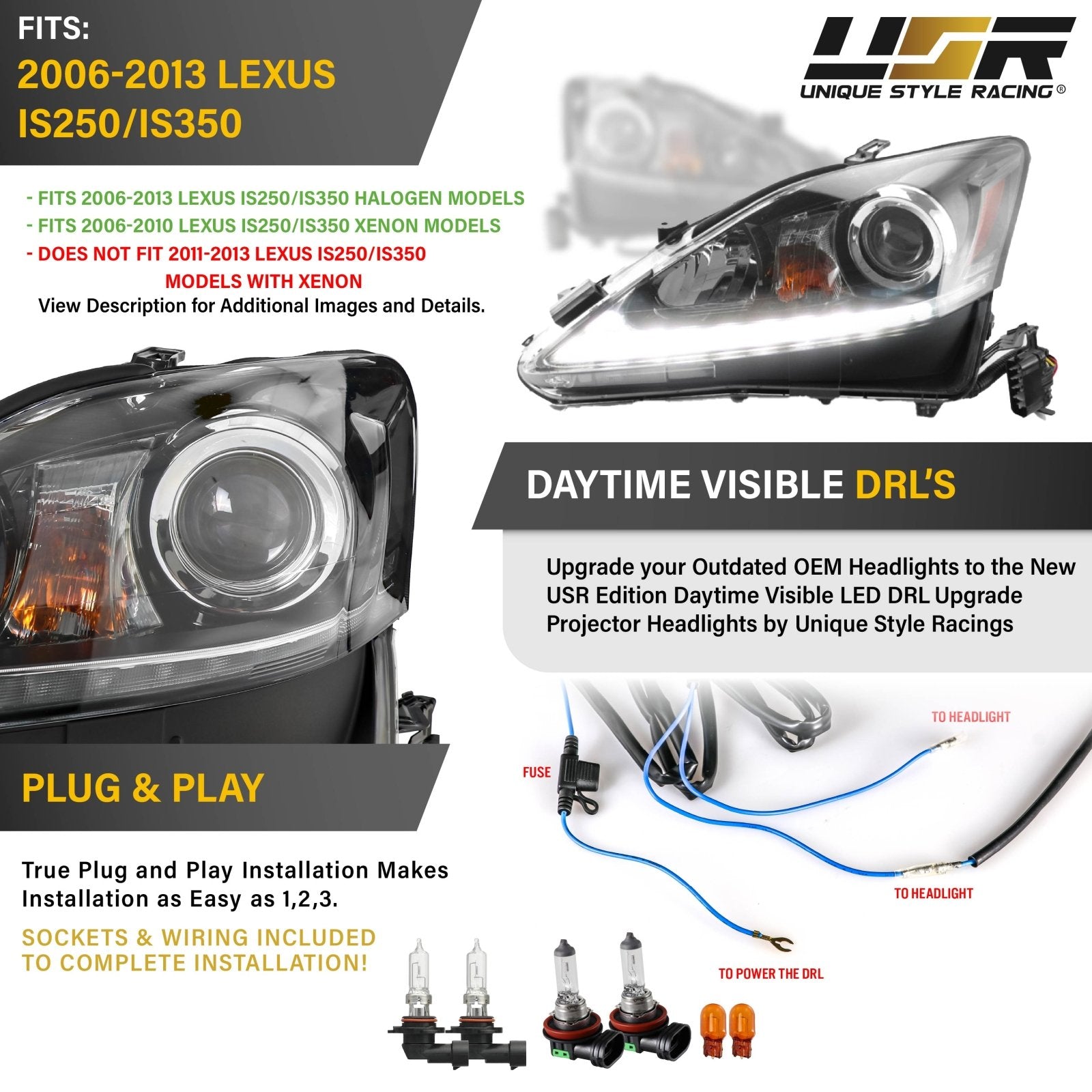 2006-2013 Lexus IS250 IS350 ISF USR Edition Daytime Visible DRL LED Check Mark Black Projector Headlight