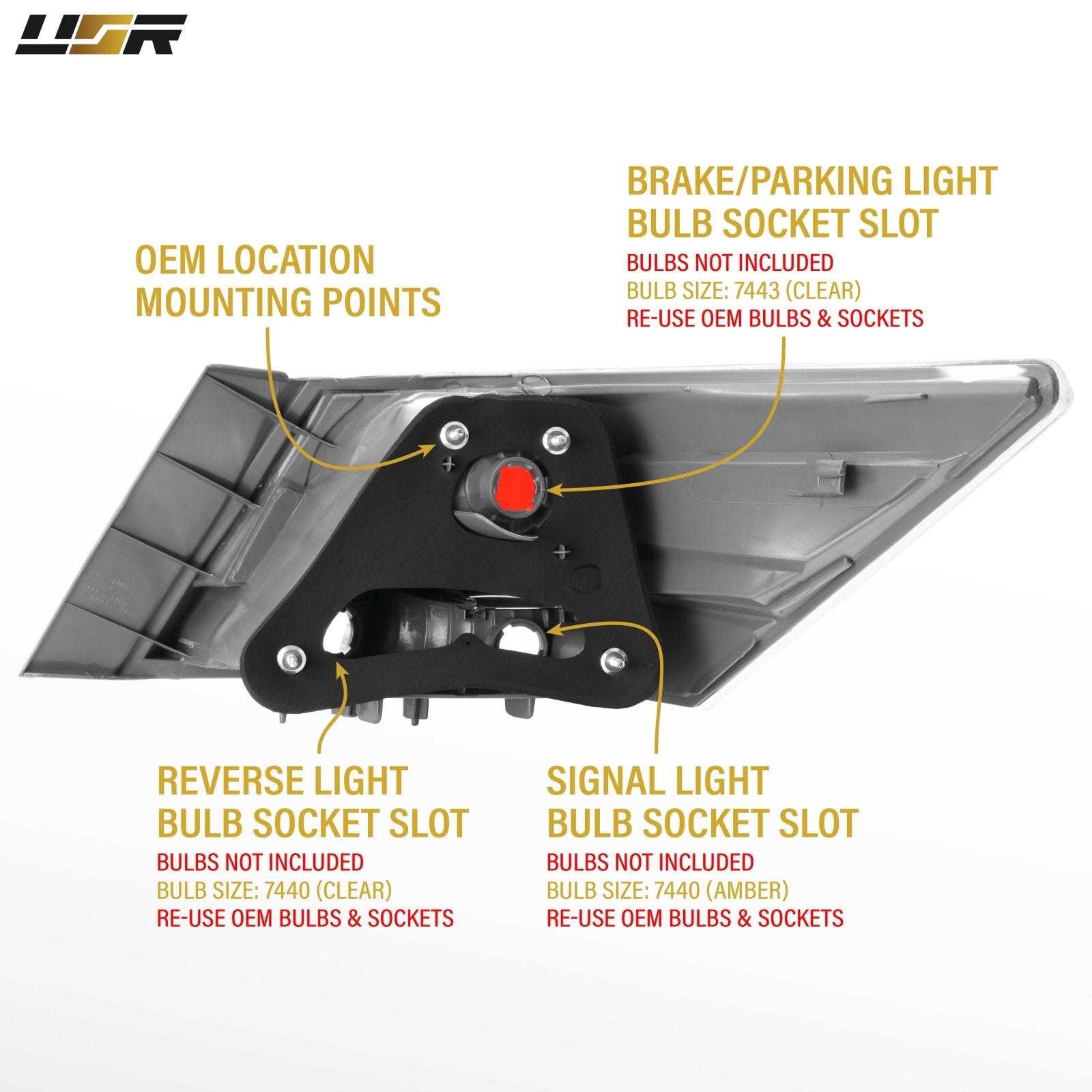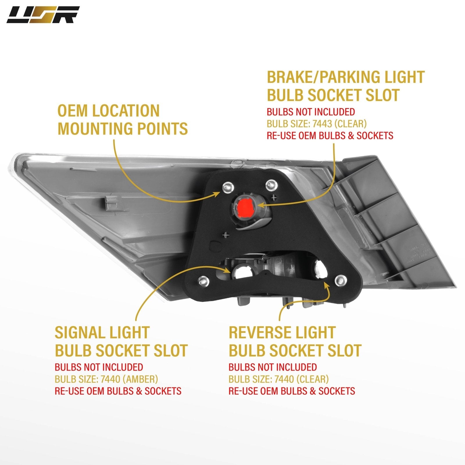 • Bulb Specifications: 7443 Brake / Parking Light, 7440 Reverse Light, 7440 Signal Light. No Bulbs Are Included.