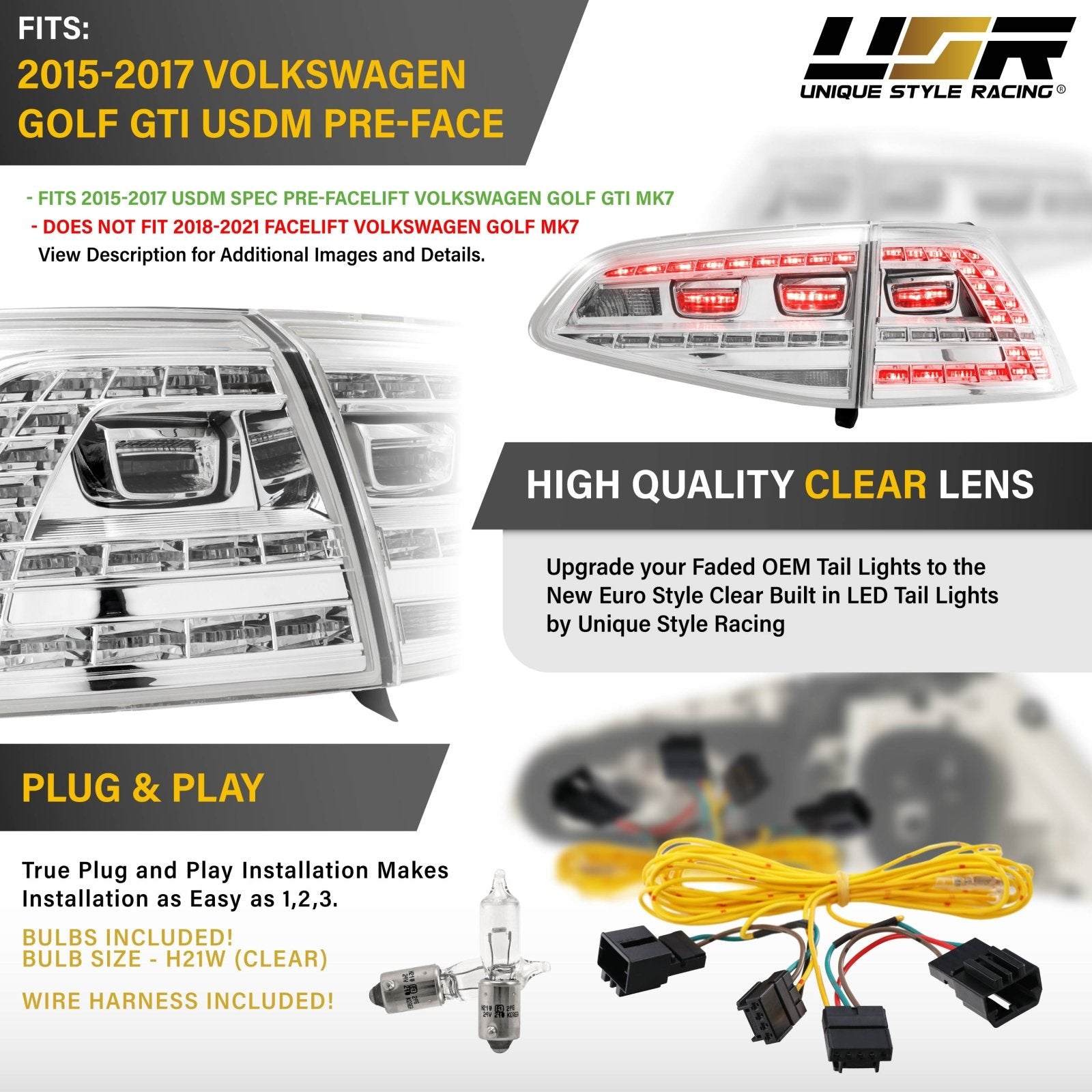 2015-2017 Volkswagen Golf GTI Euro Style All Clear Lens Full LED Tail Lights