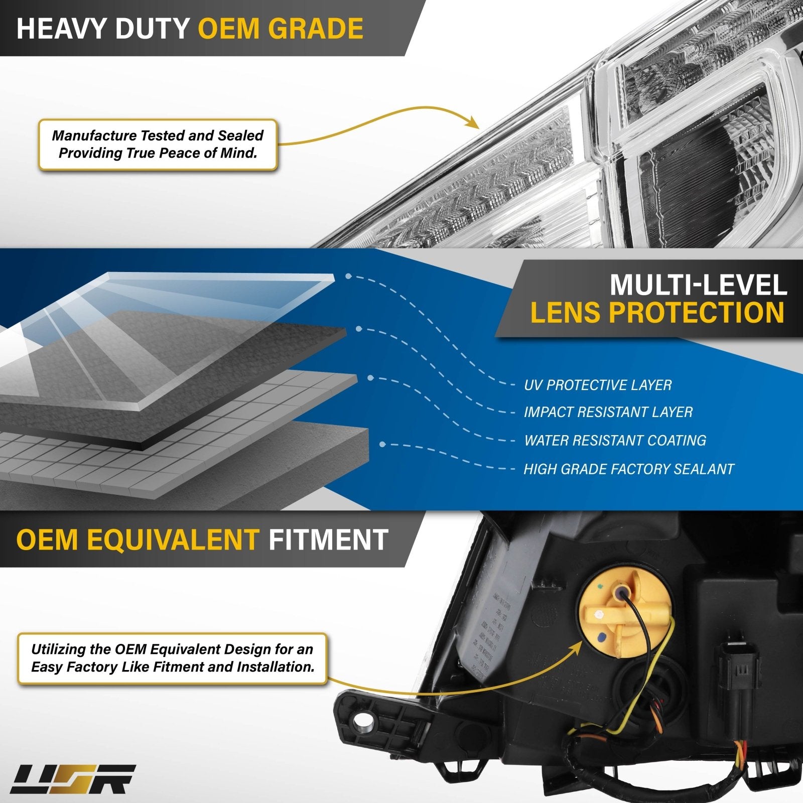 Some products are carried out as warranted by the manufacturer. Thus, if you have any questions regarding the warranty, please Contact Us before purchasing. KT Campus, Inc., AKA Unique Style Racing, does not manufacture the products in-house and does not provide any warranty for the products sold. Most DEPO brand lighting assemblies come with a 6-month manufacturer warranty. The warranty begins upon the receipt of the product and covers manufacturer quality and leaking issues only. You will be held responsible for both-way shipping fees for any warranty purposes. Even if there was no shipping charge on an item, please note that the shipping fee we've paid to ship the order to you is not refundable and will be deducted from the refund amount. USR guarantees that the products sold are as described and advertised, so we disclaim any implied title, ownership, and merchantability warranty.