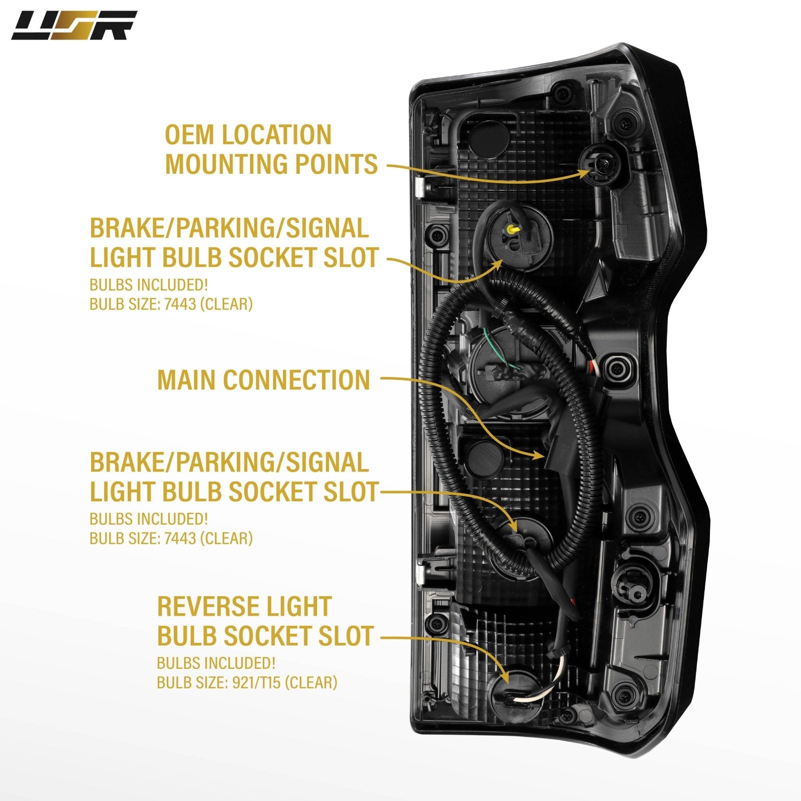 • Bulb Specifications: 7443 Parking / Signal / Brake Light, 921/T15 Reverse Light